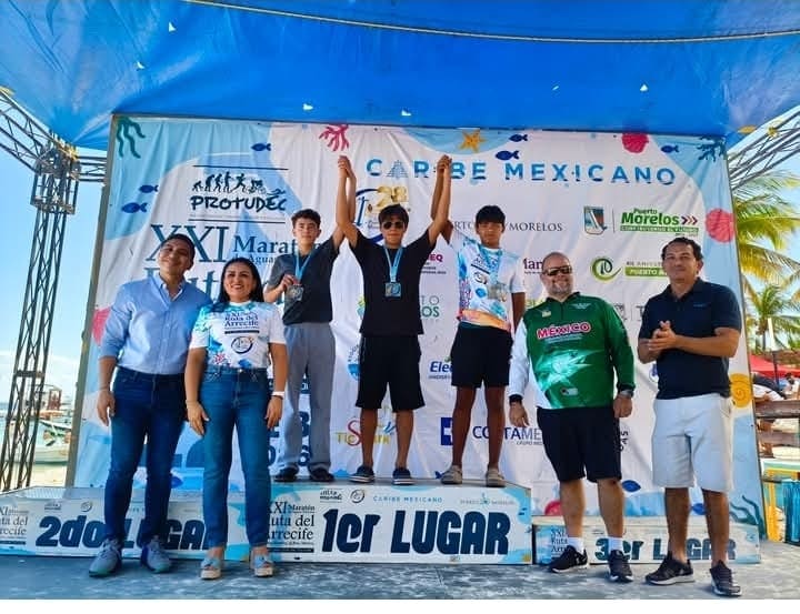 Quintana Roo.- Nadadores de Aguascalientes brillaron en la “Ruta del Arrecife 2026”, celebrado en Puerto Morelos, Quintana Roo, así como a sus entrenadores José Fermín Martínez Naranjo “Pica”, Javier de la Hoz y Laura Martínez, en esta justa.